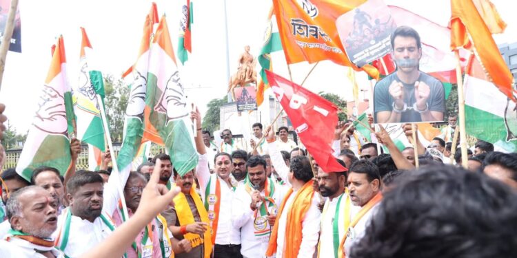 बीड प्रतिनिधी – जनसुरक्षा कायद्याच्या विरोधामध्ये आज महाराष्ट्रभर महाविकास आघाडीच्या वतीने जिल्ह्याच्या ठिकाणी धरणे आंदोलनाच्या माध्यमातून विरोध करण्यात आला बीडमध्ये छत्रपती शिवाजी महाराज पुतळा समोरील चौकामध्ये हे आंदोलन करण्यात आले.