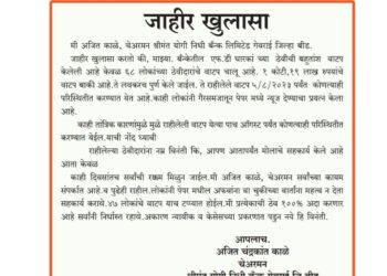 Read moreश्रीमंतयोगी मल्टीस्टेटचे चेअरमन अजित काळे यांनी प्रारंभ शी संपर्क साधून केलेला खुलासा खालील प्रमाणे